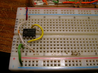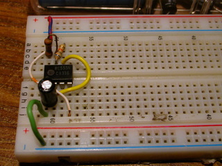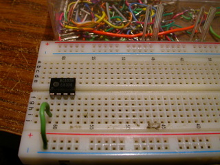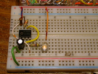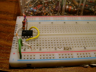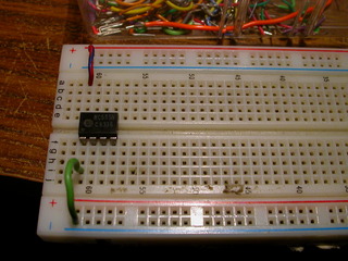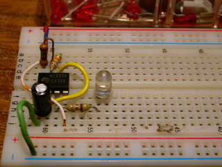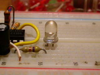 > Insert the LED with the negitive side on the resistor. |
